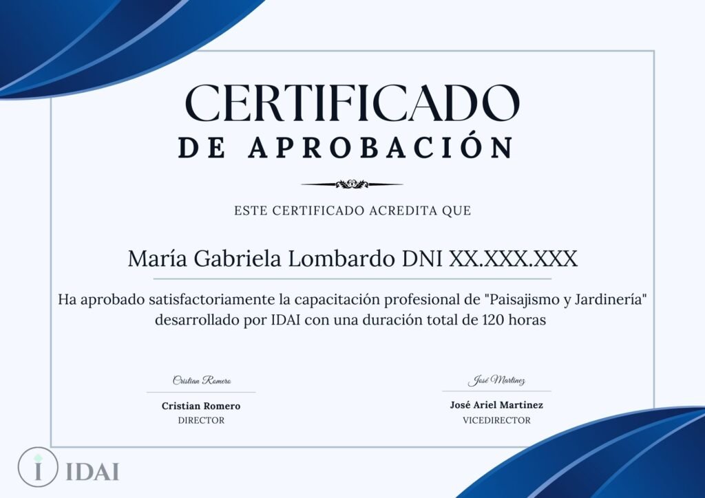 Al finalizar la capacitación, los alumnos reciben un certificado de aprobación que acredita la realización y finalización del curso.
